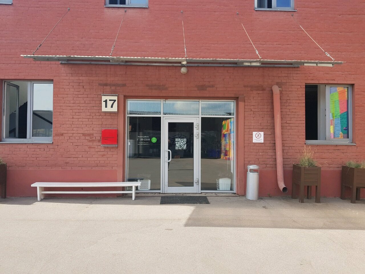 Внутри здания есть кофейня и автомат со снеками